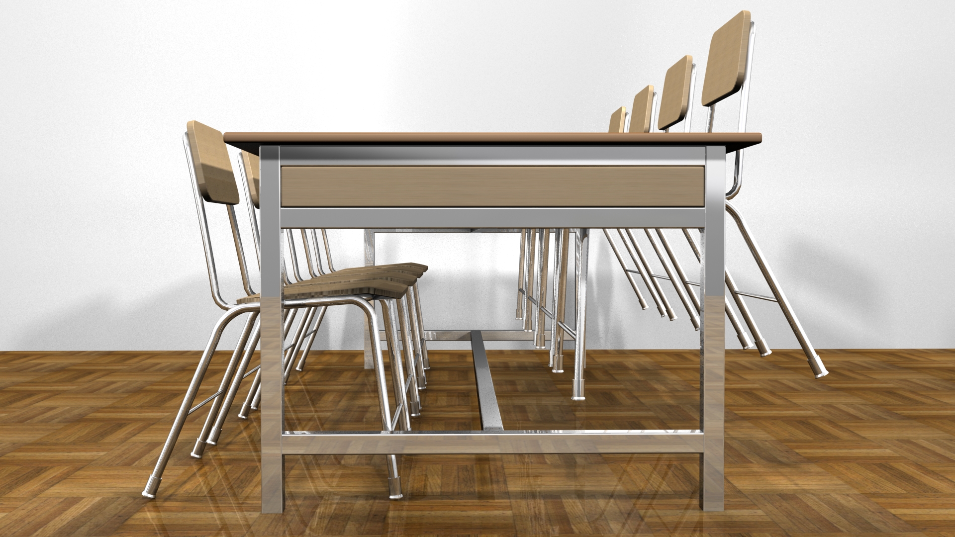 Table is equipped with finger to hang up the multipurpose chair so the floor can be cleaned easily.