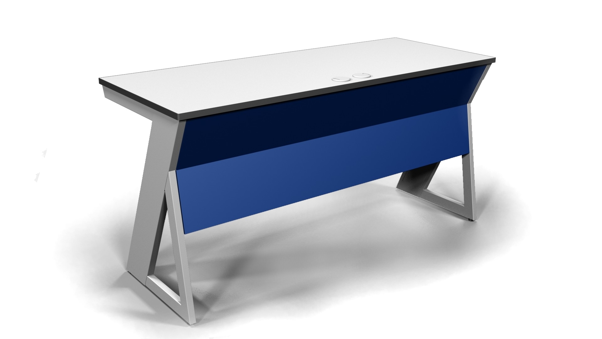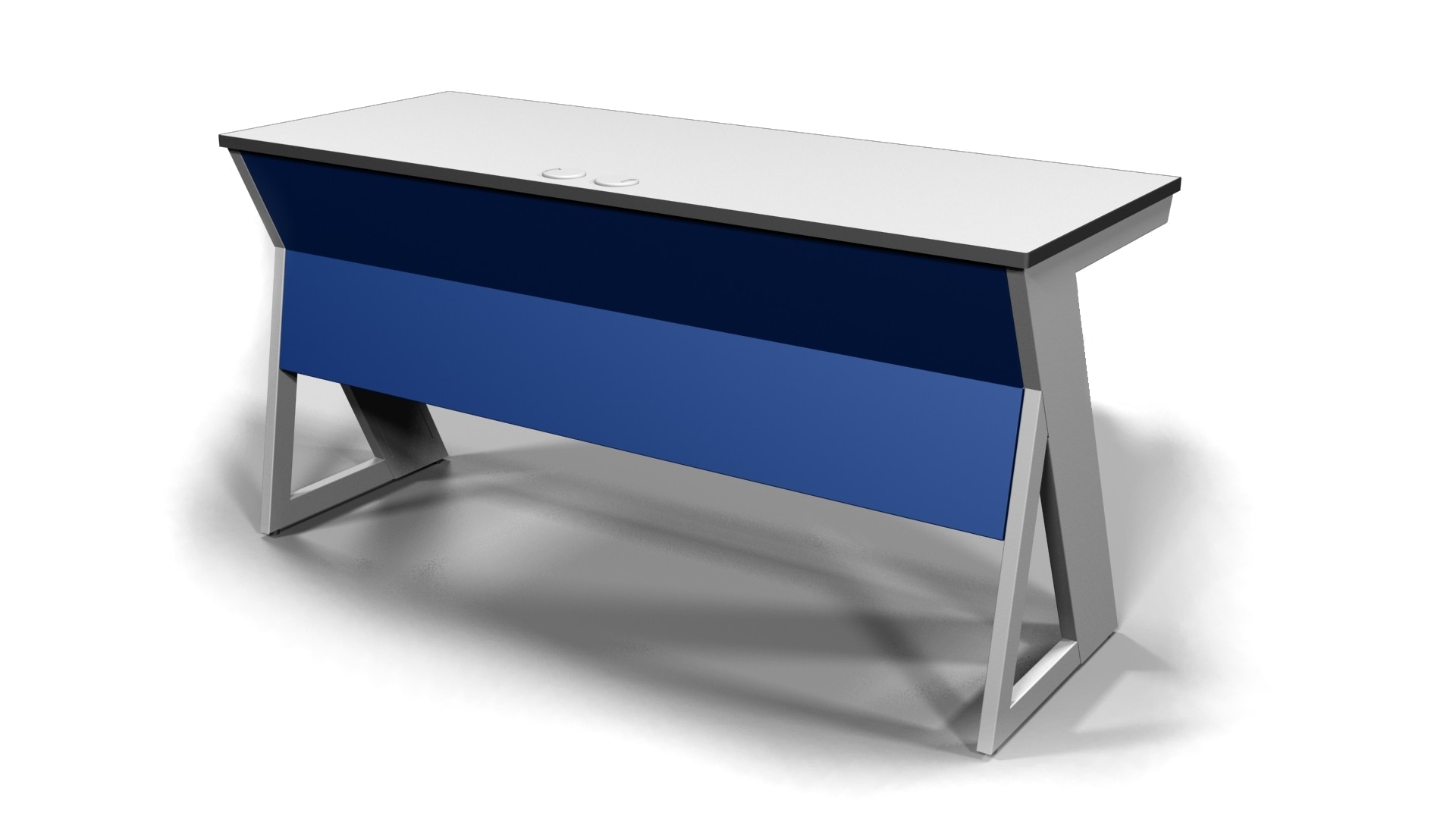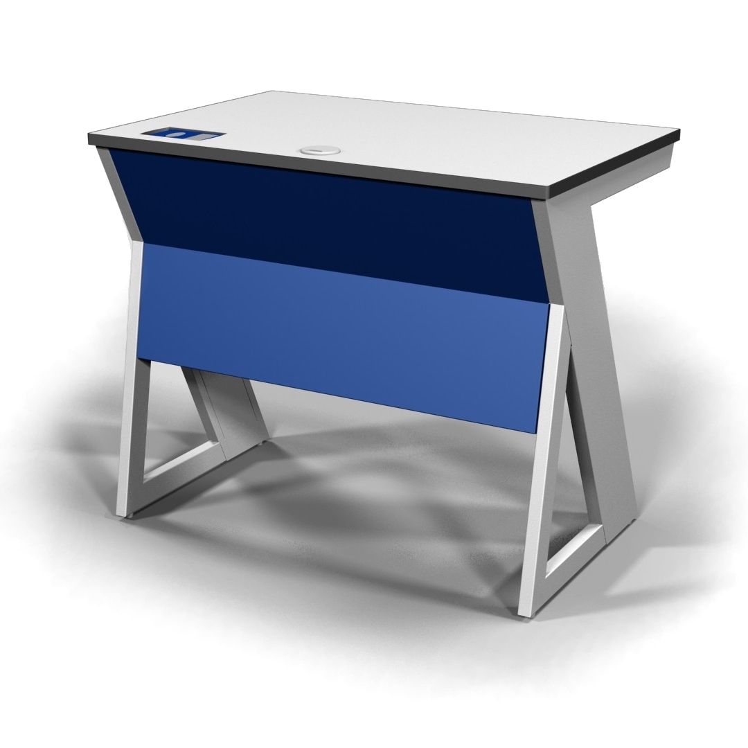 Table made of multiplex 20mm thickness covered by formica. Equipped with several electrical outlets.